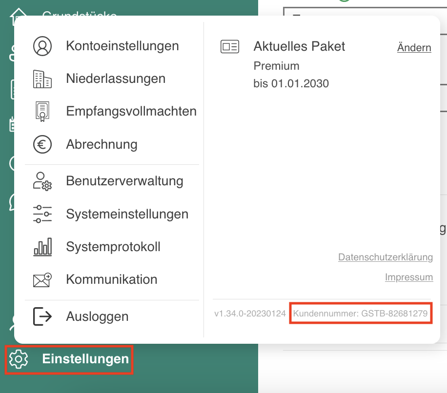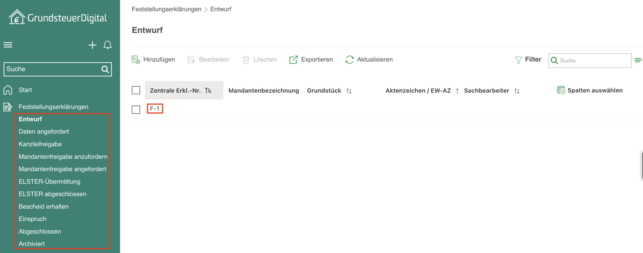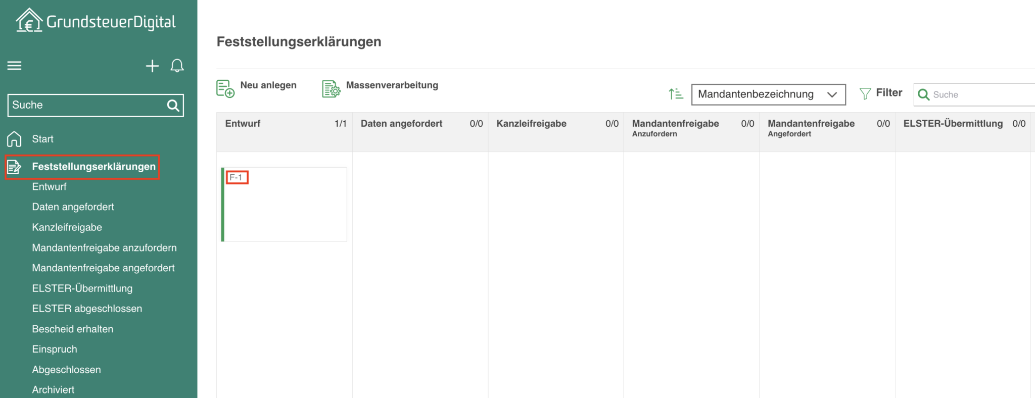 Wenn Sie im Spaltenmenü auf Grundstück gehen, dieses öffnen und dort auf den Reiter Feststellungserklärung gehen, sehen Sie ebenfalls die Nummer.