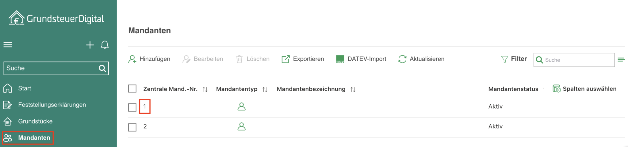 Diese Finden Sie, wenn Sie im Spaltenmenü auf Mandanten klicken.
