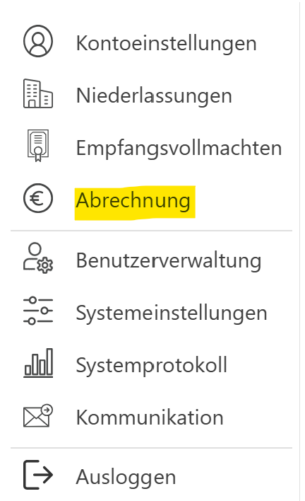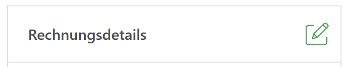 Zunächst klicken Sie unten links auf die „Einstellungen“ und in dem sich öffnenden Menü auf „Abrechnung“. Auf der Seite können Sie bei den Rechnungsdetails nun mit dem grünen Stift die betreffenden Angaben ergänzen.