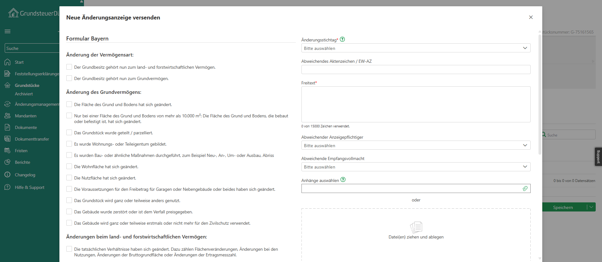 Mitteilung von Änderungen: Wenn sich am Grundstück etwas ändert (z. B. An- oder Umbau, Nutzungsänderung, Flächenanpassung), müssen diese Informationen an das Finanzamt übermittelt werden.