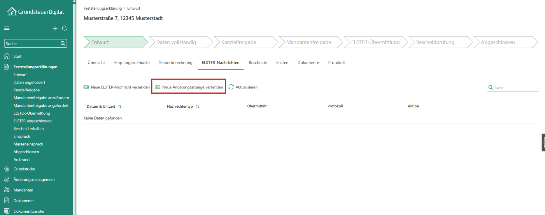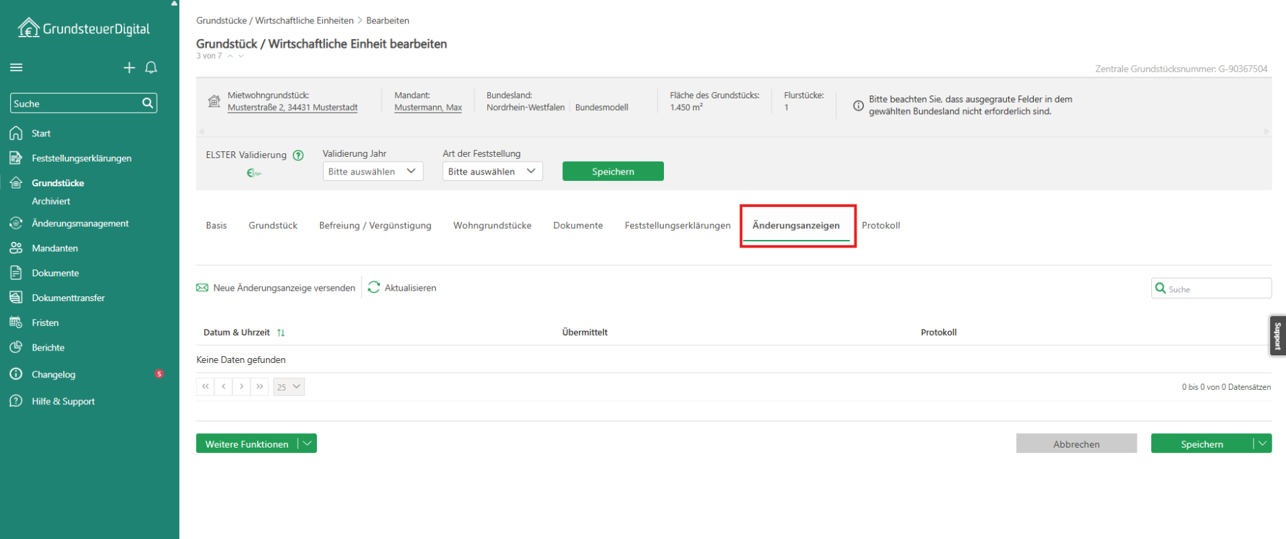 Wo finde ich Änderungsanzeigen in GrundsteuerDigital?